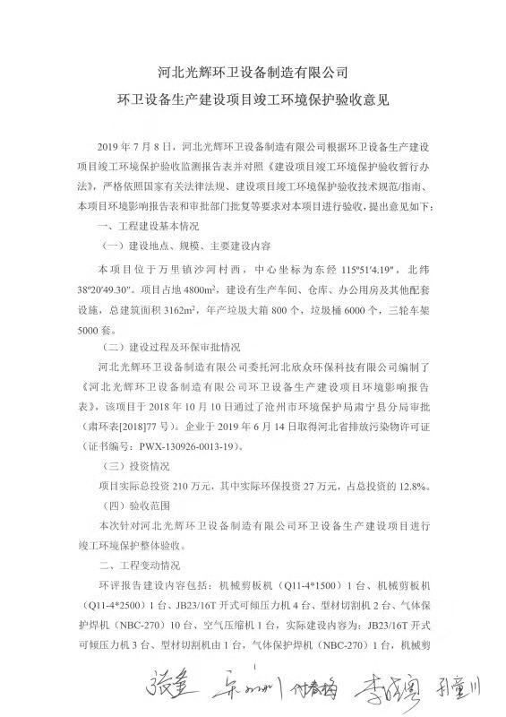 YS河北光輝環(huán)衛(wèi)設(shè)備制造有限公司驗收報告.doc